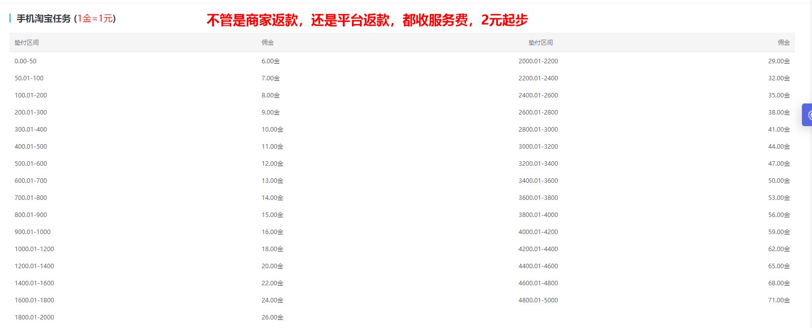 北极熊平台淘宝任务收费表: